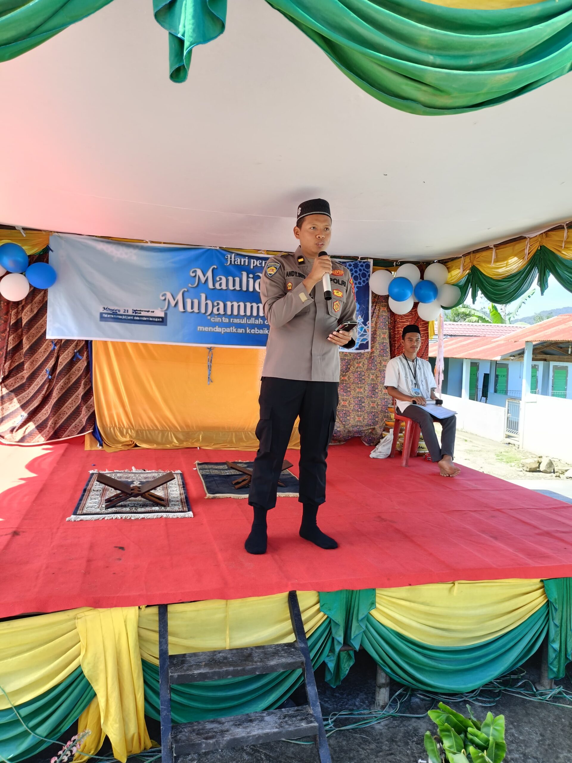 Dalam sambutannya mewakili Kapolres Pakpak Bharat, Kasi keuangan Ipda Andy S.W., Brahmana, S.H., M.H menyampaikan Permohonan Maaf dari Bapak Kapolres Pakpak Bharat yang tidak bisa hadir di acara ini dan mengajak seluruh hadirin untuk bersama – sama mendengarkan Tausyiah yang akan di sampaikan oleh Ustadz Drs. Muhammad Yamin Simatupang tentang Nabi Muhammad SAW yang bisa kita terapkan dan teladani dalam kehidupan kita sehari-hari yang kiranya nanti dapat membawa kita kebaikan di dunia dan di akhirat, ajak Ipda Andy.
