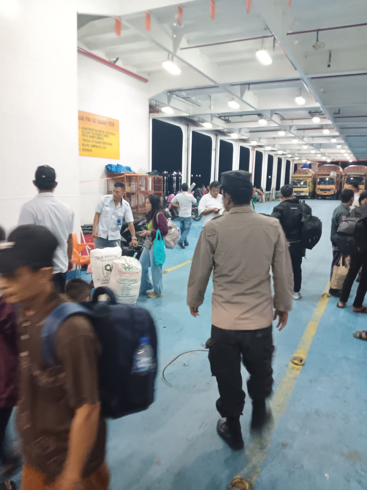 Jumlah penumpang beserta sopir tercatat sebanyak *46 orang*, seluruhnya dilengkapi identitas yang sah. Selama proses keberangkatan, situasi terpantau *aman dan baik*.